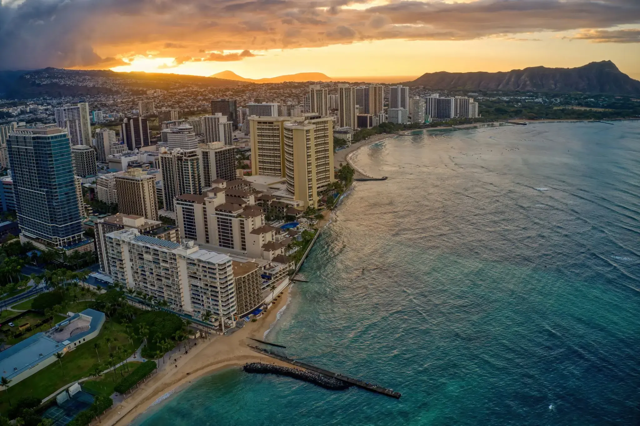 Административный центр Гавайских островов, штата США — Гонолулу является важнейшим узлом морских и воздушных путей. Через Гонолулу проходит практически вся внешняя торговля островов, а в последние годы Гонолулу больше прославился как курорт и туристический центр. Кроме многих достопримечательностей, которые обязательно заинтересуют туристов, Гонолулу еще и прекрасное место для любителей активного отдыха. Поклонники виндсерфинга оценят побережье Вайкики, температуру воздуха здесь очень редко падает ниже + 18С, а также не поднимается выше + 28С.
